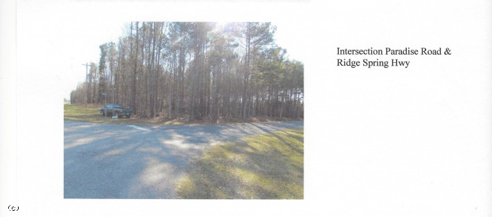 This 3.84 acre tract is located at the intersection of Ridge Spring Highway and Paradise Road approximately five miles southeast of The Town of Saluda. Topography is flat to gently rolling. Public water is available. It is heavily stocked with mature, natural pine and hardwood timber. It is an excellent homesite(s).